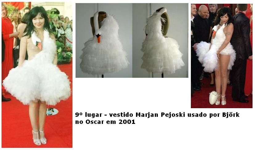 Outros vestidos icônicos que apareceram na lista foram o pretinho básico de Audrey Hepburn em Bonequinha de Luxo e o mini em forma de cisne usado por Bjork no Oscar de 2001 e o vestido de noiva da princesa Diana.
